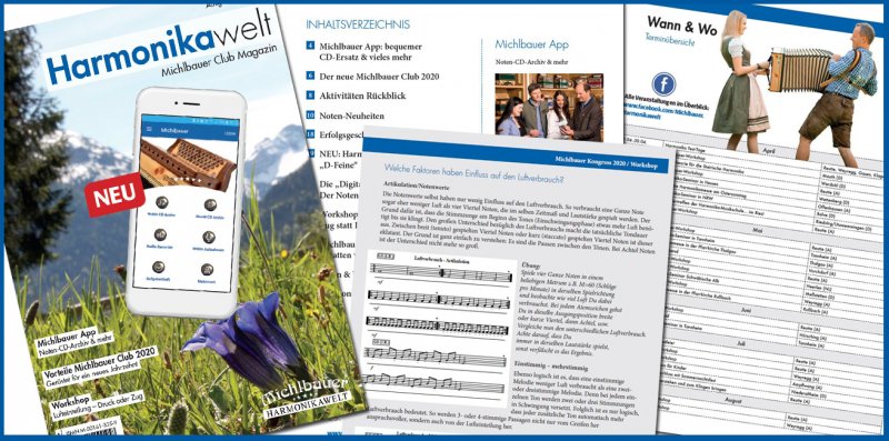 Du hast das Michlbauer Harmonikawelt-Magazin ebenfalls so vermisst wie wir? Dann kannst du dich nun freuen – das Harmonikawelt-Magazin ist wieder da! Du erhältst es exklusiv im Michlbauer Club 2x jährlich.