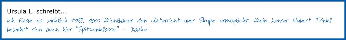 Ein Michlbauer-Lehrer hat die Erfahrung dich bestmöglich zu fördern und zu fordern. Die unmittelbaren Rückmeldungen während oder nach dem Vorspielen eines Stückes bewahren dich davor falsche Dinge weiter zu üben und damit zu automatisieren. Dadurch ersparst du dir mühseliges und oft langwieriges Korrigieren von falschen Angewohnheiten. Das ist auch ein gravierender Nachteil bei allen Online-Plattformen oder Videokursen. Auch wenn das Lernvideo noch so gut aufbereitet ist, jeder Griff optimal vorgezeigt und erklärt wird und du auch hörst, wie das Ganze klingen soll, sagt es dir nicht wie du es gespielt hast, bzw. wie es bei dir klingt. Viele musikalischen Dinge fallen einem selbst leider nicht auf und deshalb man kann es dann auch nicht korrigieren. So bleibt immer die Ungewissheit es vielleicht nicht ganz richtig zu machen. Über den Online_Live Unterricht bei Michlbauer bleibt dir das alles erspart. Falls du also rein nach Gehör oder nach Videos spielen solltest und du mit deinem Lernfortschritt nicht zufrieden bist, dann wäre die Ergänzung mit Live-Unterricht möglicherweise eine optimale Lernkombination für dich.