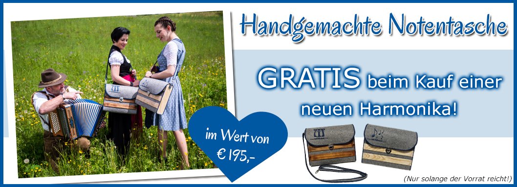Hinweis: Unsere handgemachte Holz-Notentasche erhältst du GRATIS beim Kauf einer Harmonika aus dem neuen Jubiläums-Katalog 2022.