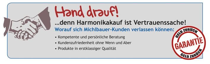 Michlbauer Kunden verlassen sich auf die große Erfahrung aus der Unterrichtspraxis, dass die Harmonikas so ausgestattet sind, damit das Muszieren garantiert Freude macht!