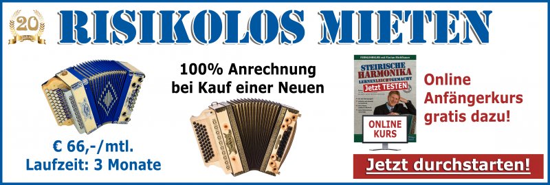 Wenn du dir nicht sicher bist, dann starte zuerst mit einer Leihharmonika. Bei Michlbauer kannst du eine Leihharmonika für wenig Geld mieten. Diese Miete wird dir beim Kauf einer Harmonika voll angerechnet!