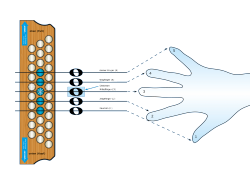 Der Hauptunterschied ist, dass es in der Griffschrift keine Notennamen (zB c, d, e, f, g, …) oder bestimmte Tonhöhen gibt. Im Gegensatz zu den Noten zeigt dir die Griffschrift an, welche Tasten du drücken musst und welche Finger du dazu benutzen sollst.
